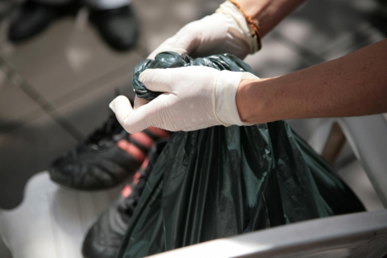 Les douches représentent une étape essentielle dans le traitement contre la gale. De même que le traitement des vêtements et des chaussures. Des bénévoles pulvérisent les vêtements sales avec un produit anti-parasitaire avant de les enfermer dans un sac.
