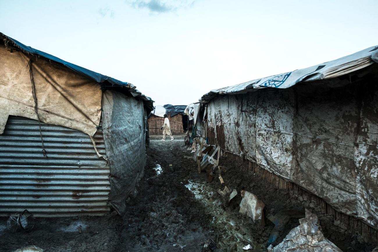 Les résidents sont ainsi contraints de vivre dans des abris temporaires très réduits, fabriqués à base de tôles ondulées, de tiges de plantes, de boue et de bâches en plastique. Or, ces abris ne protègent que très peu des intempéries, en particulier durant la saison des pluies, lorsque les allées deviennent des chemins de boue cahoteux.