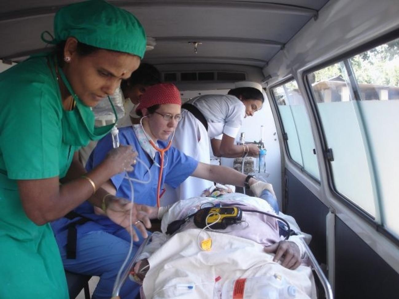 Grâce à la présence de l'équipe MSF à l'hôpital de Point Pedro, seuls 17% des patients admis en novembre 2007 ont nécessité un transfert à l'hôpital de référence de Jaffna. Ils sont accompagnés par un médecin de l'équipe MSF. Dans cette région, les déplacements de l'ensemble de la population sont difficiles. Il s'agit d'une zone de militarisation intense où l'on compte 1 soldat pour 10 habitants. Les transferts de patients doivent s'effectuer sous autorisations militaires durant le couvre-feu. Mais les équipes parviennent toutefois à référer les malades, même lorsque les convois militaires empruntent les axes routiers.
