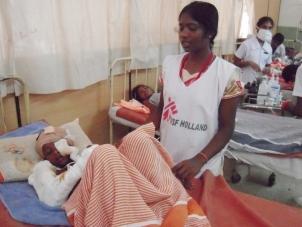 « Mais MSF m'a formé. J'ai notamment appris comment parler aux patients, comment identifier les cas les plus urgents, comment soulever les malades et comment nettoyer leurs blessures. Maintenant, je trouve que c'est très facile de faire un pansement ! »