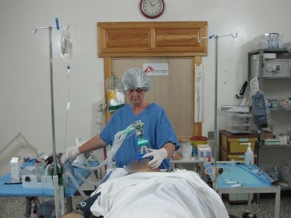 Le médecin urgentiste est occupé par un arrivage régulier de patients présentant des petites blessures par balle et par éclats qui n’ont pas besoin d’aller au bloc. Je veille à tout ce que mon matériel soit propre et apporte ce qu’il faut au bloc avant de monter dans la salle d’hospitalisation avec un de nos interprètes. Je dois parler avec les parents d’un jeune homme que nous avons pris en charge la veille et qui avait reçu une balle au cou. Il a une lésion de la moelle épinière et des difficultés respiratoires à cause d’un gros hématome. Nous l’avons stabilisé et lui avons fait une trachéotomie mais il a besoin de soins plus spécialisés et on doit organiser avec sa famille son transfert dans un autre pays.