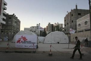 Des blessés ayant besoin d'interventions chirurgicales de reprise ou spécialisées sont pris en charge dans un hôpital temporaire de Gaza ville. Depuis plus de trois ans, MSF s'est équipée de structures gonflables qui permettent d'installer rapidement et d'adapter en fonction des besoins plusieurs blocs opératoires, des unités de soins intensifs et des lits d'hospitalisation. Les explications du docteur Mégo Terzian, responsable adjoint des programmes d'urgence à MSF.
