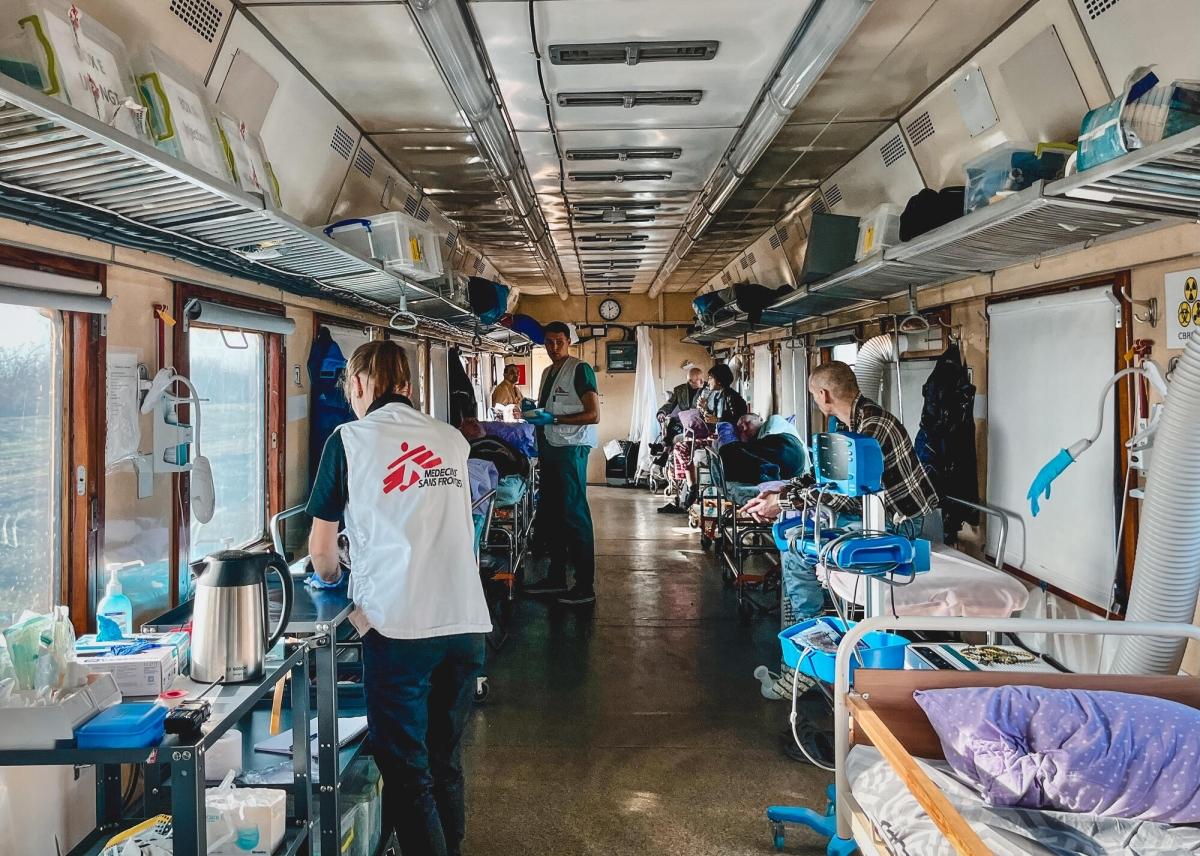 « En novembre 2022, MSF a évacué 267 patients de l'hôpital, explique la coordinatrice du train d'évacuation médicale MSF, la Dr Albina Zharkova. Cette fois-ci, le département de santé de la région de Kherson a demandé notre soutien pour évacuer d'urgence 150 patients civils, ayant de grands besoins médicaux. »