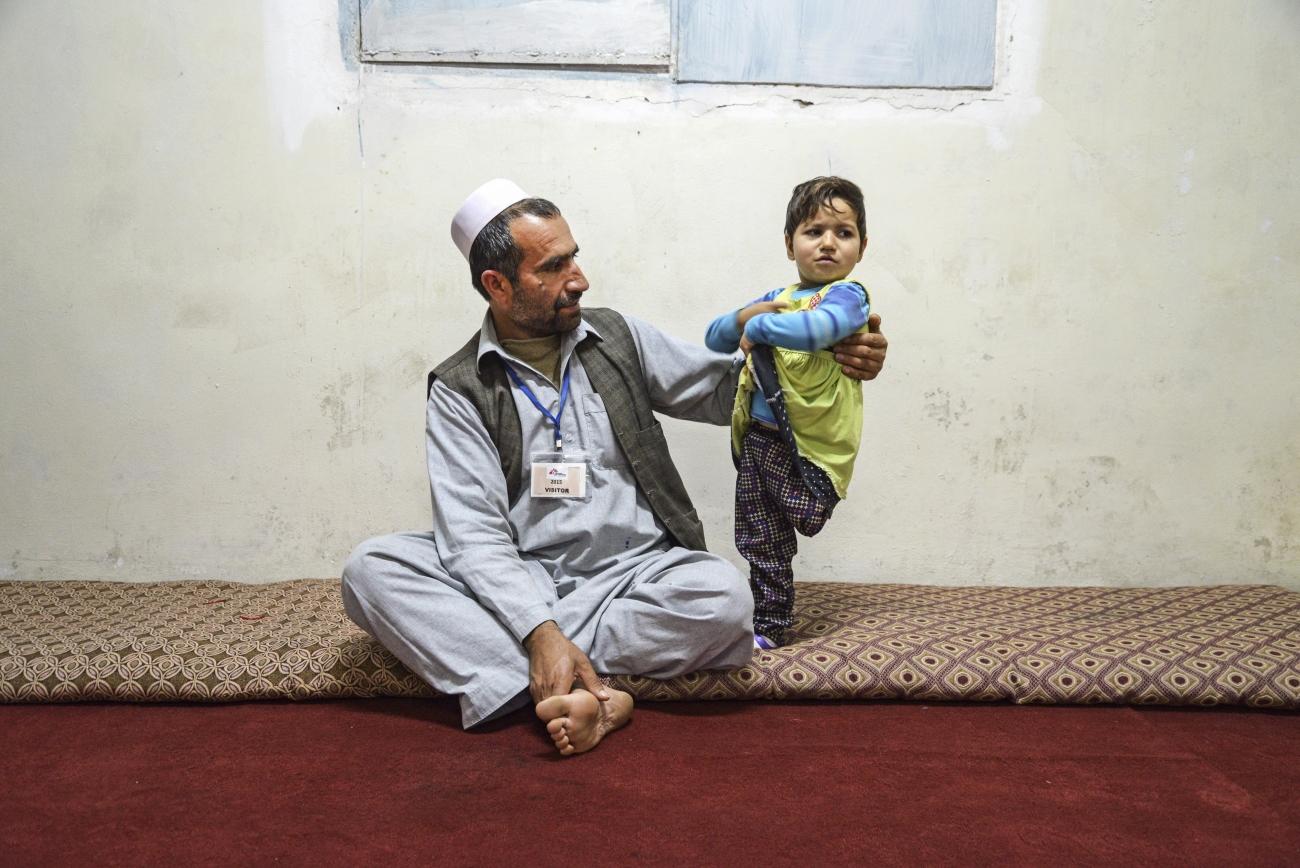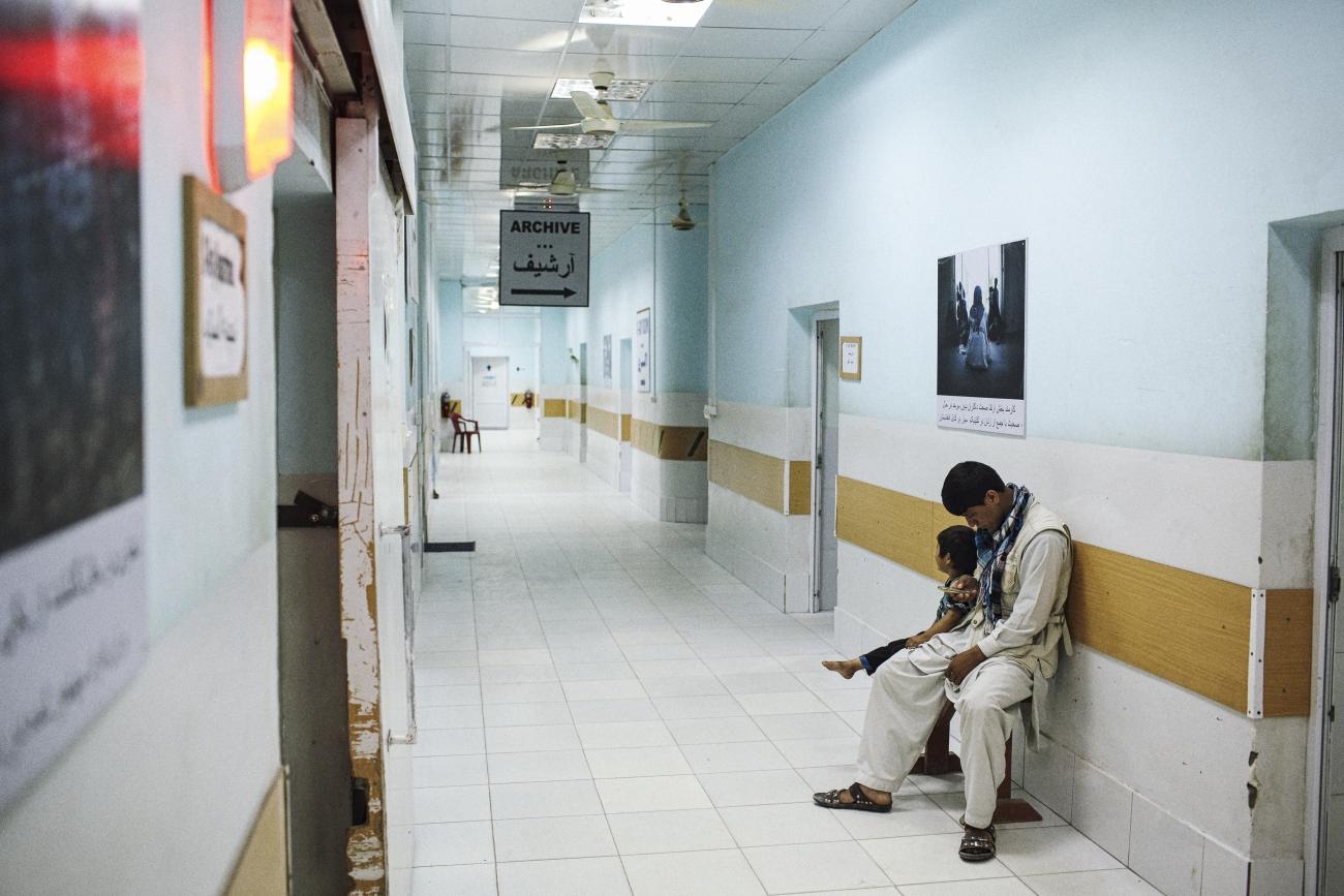 Un petit garçon avec son père, dans l’attente de passer une radio dans le centre de traumatologie de l’hôpital de Kunduz. C’était le seul centre de ce genre dans toute la région du nord-est de l’Afghanistan.