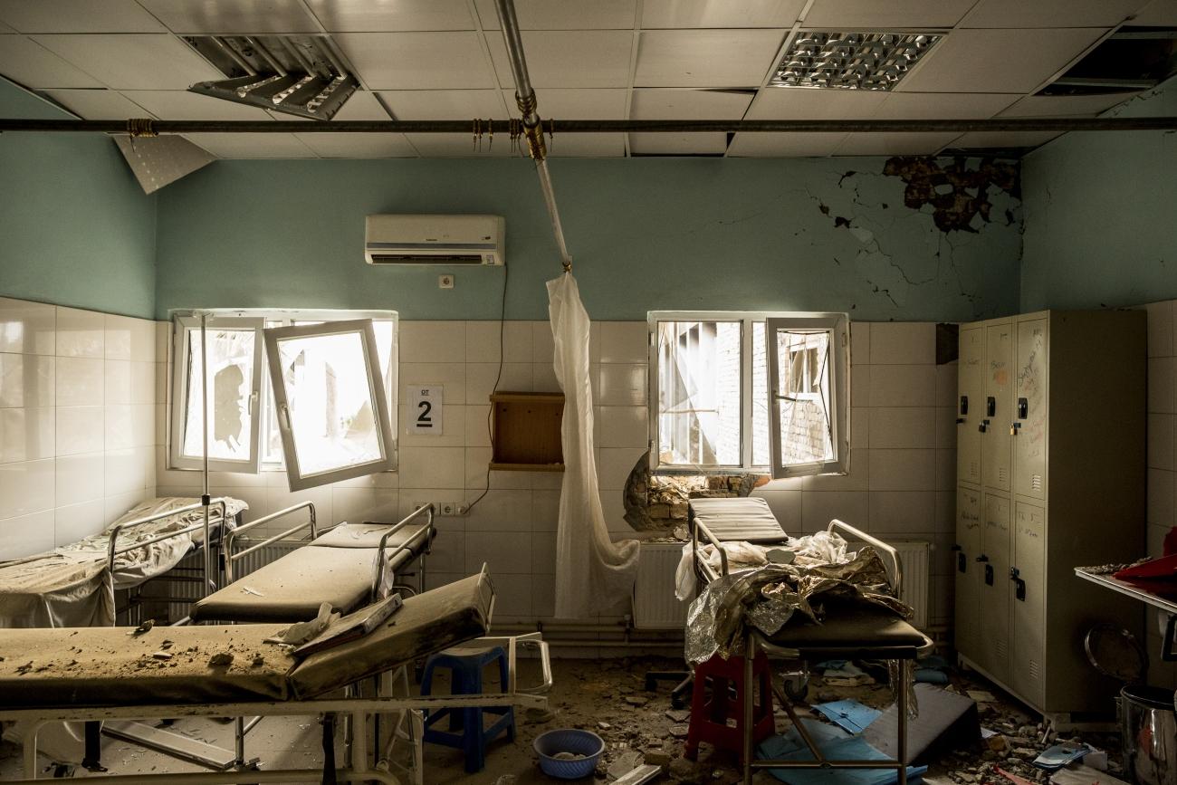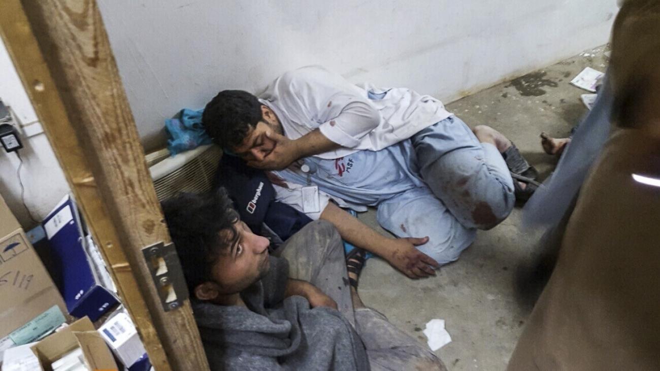 L’équipe MSF en train de soigner les collègues et patients blessés par le bombardement de l’hôpital. Après l’attaque, MSF a dû prendre la difficile décision de stopper ses activités et d’évacuer l’hôpital.