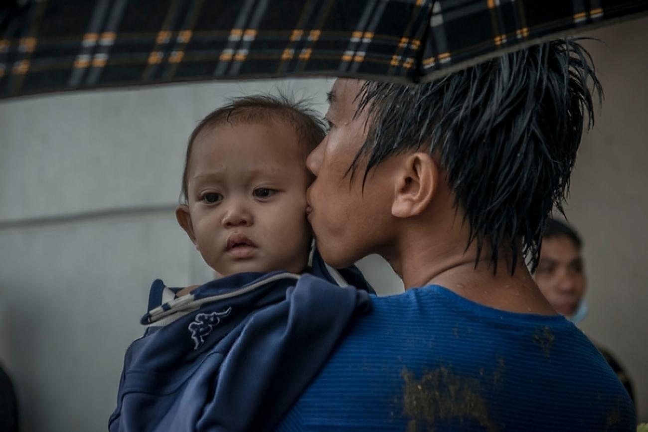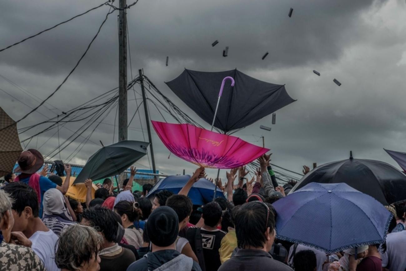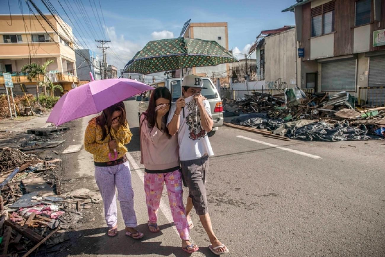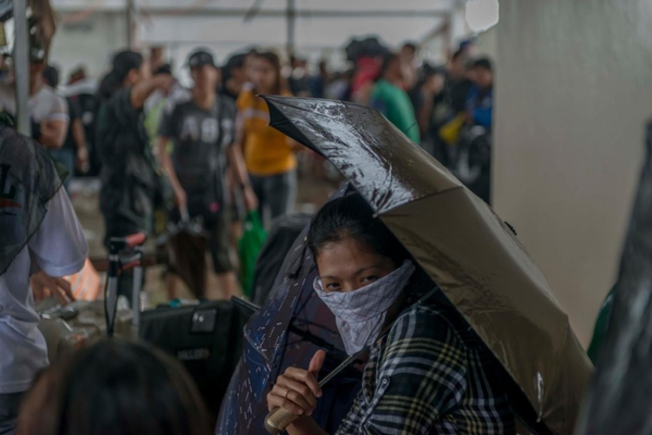 Se protégeant de la pluie et de l’odeur, les survivants ont attendu patiemment pendant quatre jours que l’aide commence à arriver.