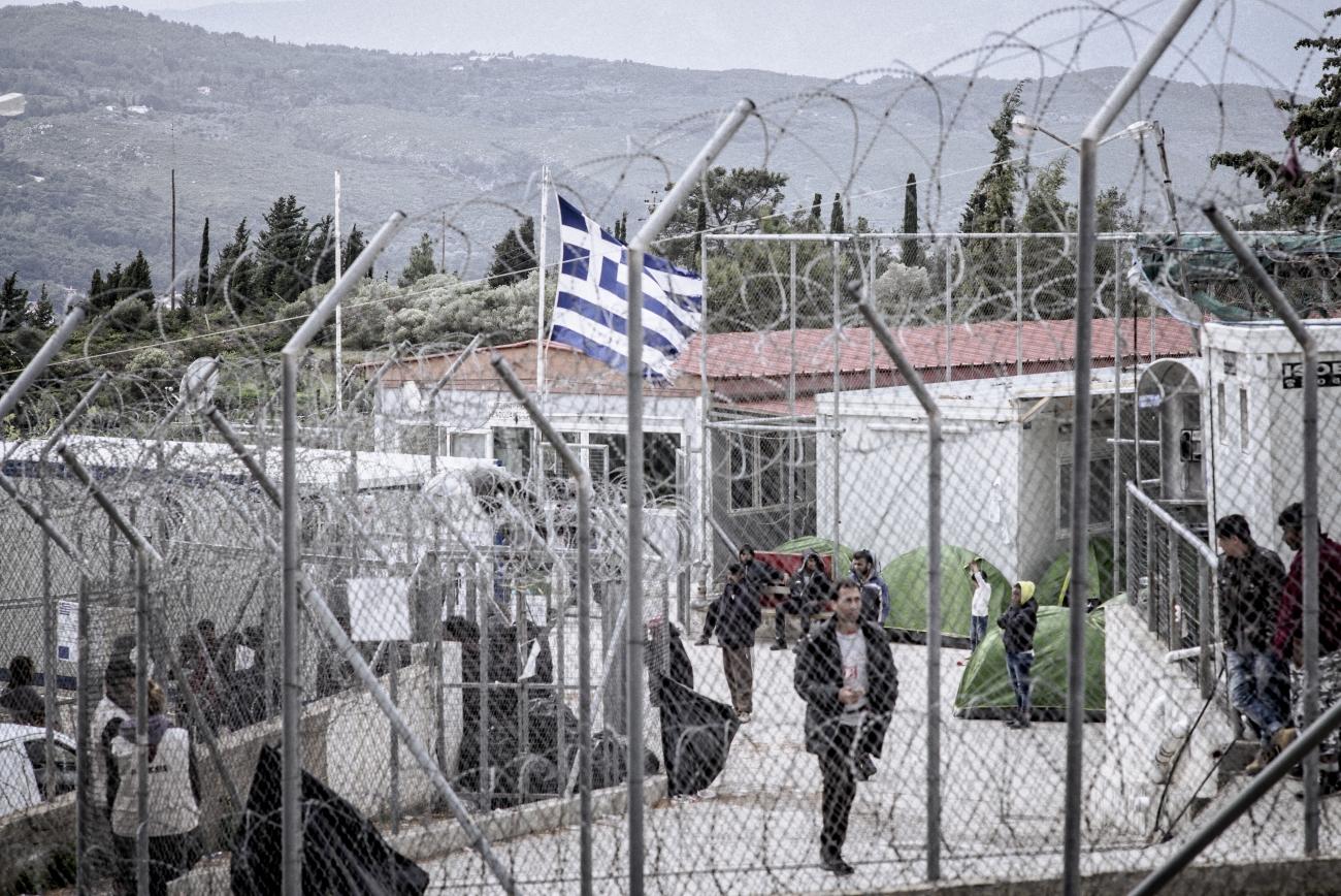 Samos, Grèce. Depuis l'entrée en vigueur de l'accord entre l'Europe et la Turquie, le 20 mars 2016, la Grèce a transformé les camps de réfugiés en camp de rétention. Les migrants y sont triés, en attente d'un renvoi vers la Turquie pour ceux arrivés après cette date.