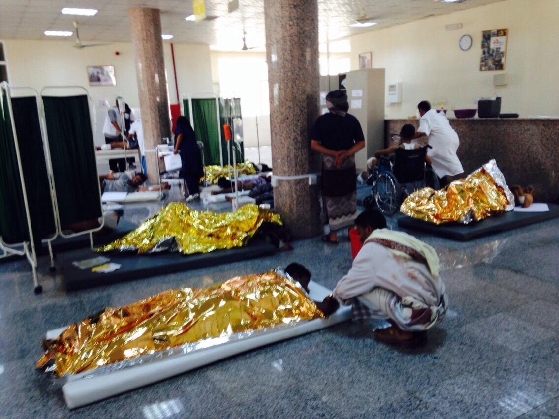 « La situation est terrible à l’hôpital. Ce jeudi nous avons reçu 87 blessés. C’était dramatique. Nous avons travaillé dans des conditions très difficiles, on baissait la tête constamment de peur d’être touché par les tirs continus qu’on entendait à l’extérieur. La veille on avait reçu 45 patients. Depuis la semaine dernière jusqu’à aujourd’hui, MSF a reçu un grand nombre de blessés, au moins 250 et on a dû réquisitionner les espaces de bureaux pour y installer des blessés sur des matelas. A Aden la situation est toujours autant dramatique. Dans ce contexte, nous avons besoin de plus de ressources humaines, de volontaires et de journaliers. La morgue est pleine de cadavres que les familles ne peuvent pas venir récupérer à l’hôpital. C’est encore très dangereux pour nous, venir travailler à l’hôpital est très risqué. J’ai dû quitter l’hôpital la nuit dernière pour voir ma famille et m’assurer qu’ils avaient tout ce qu’il fallait en mon absence. »