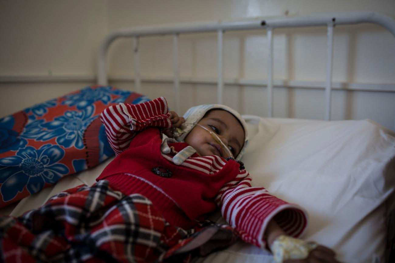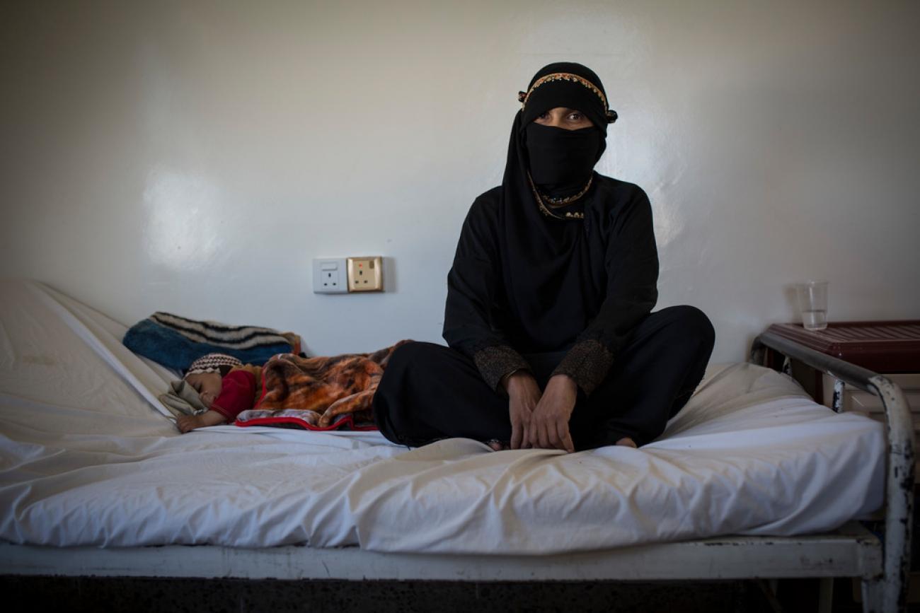Yahya est le petit dernier d’Hadiya. Pendant qu’elle l’allaitait, elle s’est rendue compte qu’il avait des poussées de fièvre. Ils sont originaires de Shihara, un village reculé planté au sommet d’une montagne. Elle a dû tout quitter afin d’emmener Yahya à l’hôpital. Comme une majorité de Yéménites, ils subissent l’inflation et les pénuries.