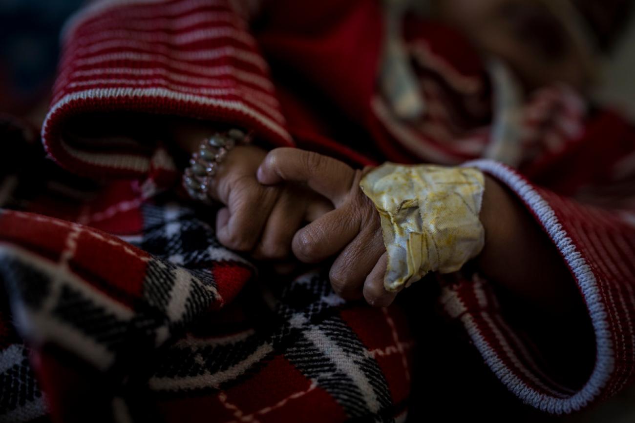 Les mains de Sumaya, deux ans, atteinte de rachitisme.