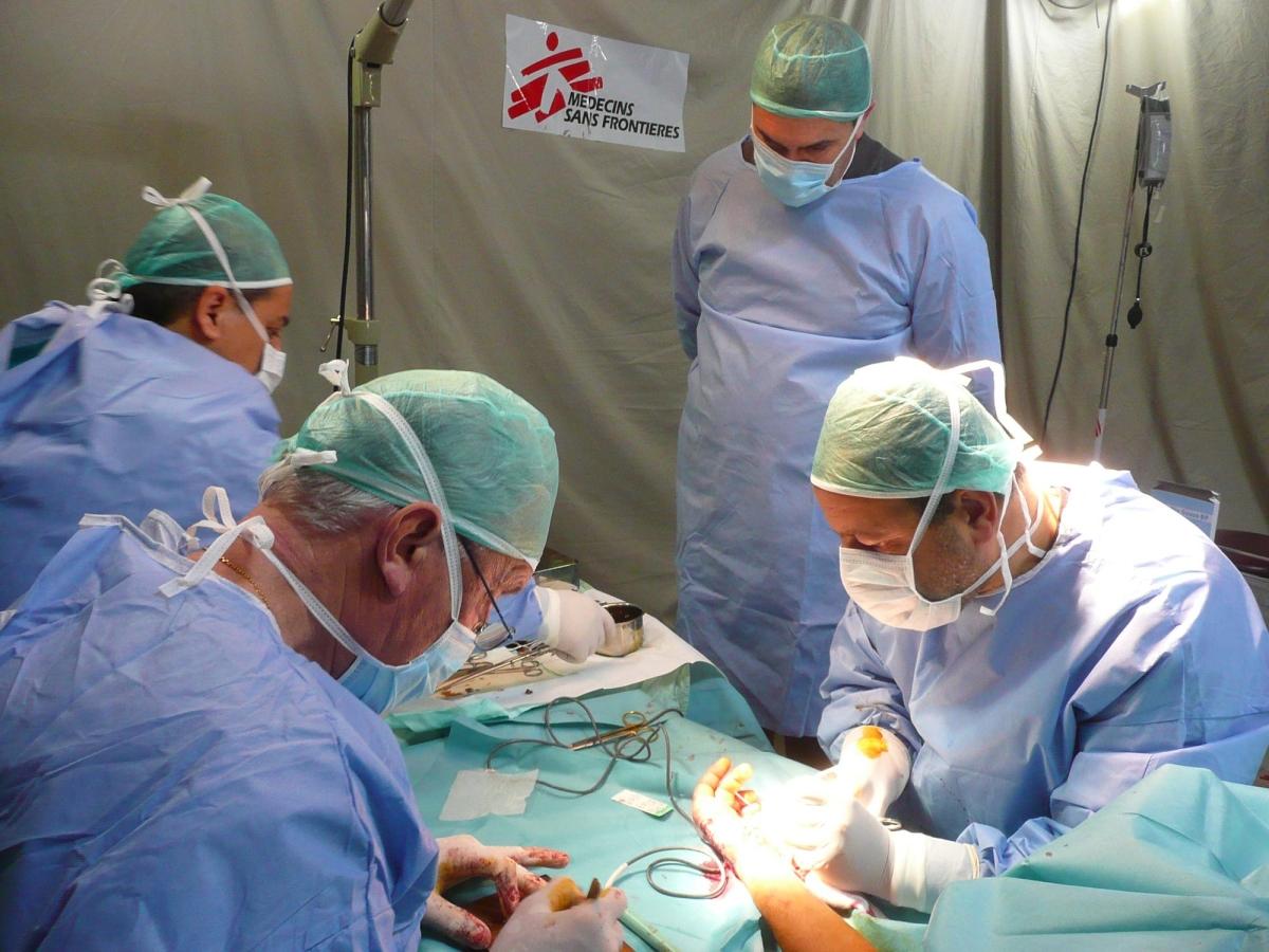 La chirurgie humanitaire pratiquée par MSF sur le terrain depuis plus de 40 ans s'applique souvent dans des contextes de guerre. Elle n'a cessé d'évoluer développant des solutions mieux adaptées aux réalités du terrain et intégrant des normes de pratiques médicales toujours plus exigeantes.