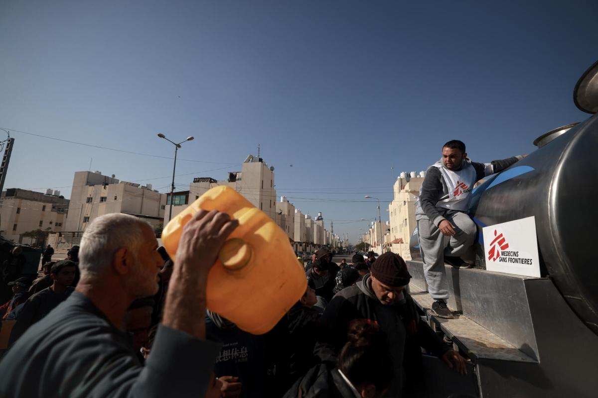 Présente depuis 20 ans dans la bande de Gaza, MSF a mis en place une réponse d’urgence axée sur la médecine de guerre, la santé primaire, la santé mentale, la physiothérapie, la vaccination et les soins post-partum. Les équipes MSF ont également pris en charge l’acheminement de fournitures médicales et soutiennent une dizaine de points de distribution d’eau potable. A fin mars, MSF avait par exemple distribué 240 000 litres d'eau potable chaque jour ainsi que 100 tonnes de fournitures médicales (principalement des kits chirurgicaux et de pansements envoyés à Gaza) et effectué plus de 74 300 consultations médicales.