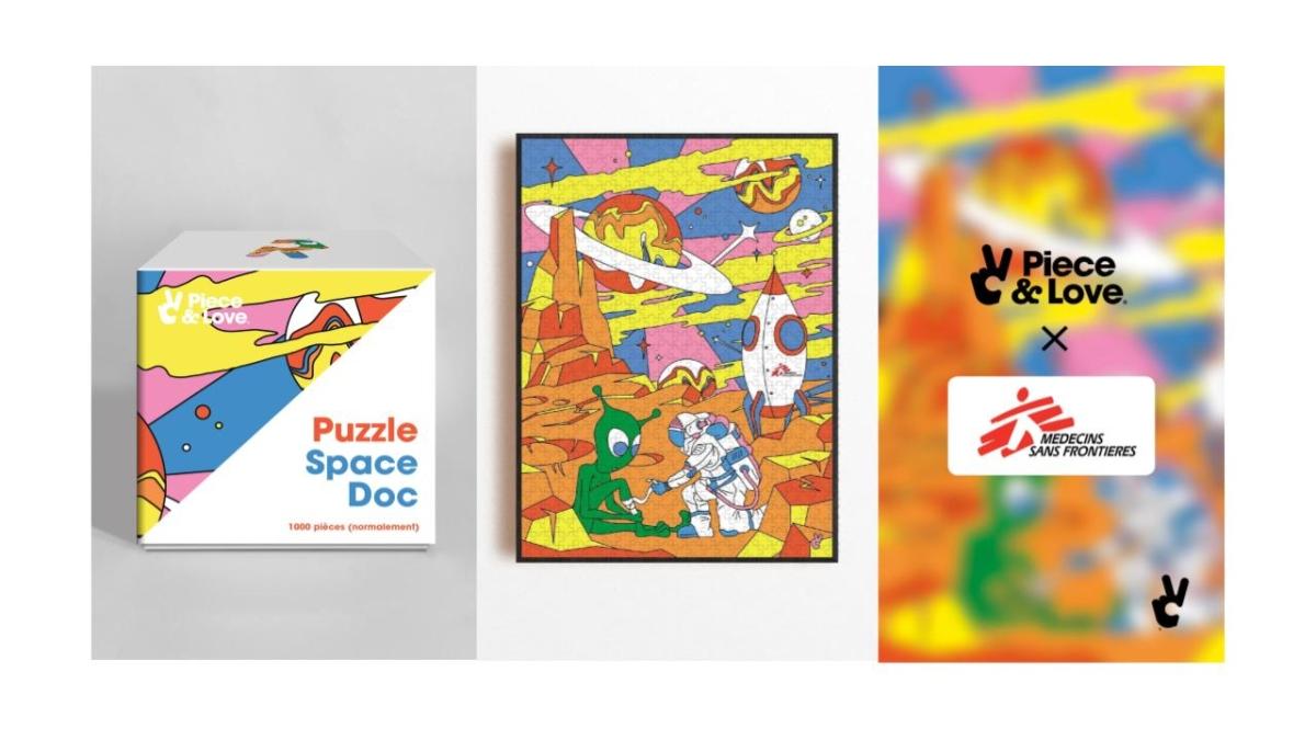 Le puzzle dessiné spécialement par Piece & Love pour l’opération, met en scène un médecin MSF venant d’atterrir sur une planète étrangère pour apporter des soins à un extra-terrestre. Par ce dessin, Piece & Love a voulu mettre en avant un des principes fondamentaux d’action de MSF, l’impartialité. La marque illustre ainsi le fait que l’ONG intervienne au-delà des frontières, sans distinction géographique et sans discrimination, en portant la priorité vers les terrains d’intervention où les besoins sont les plus pressants.