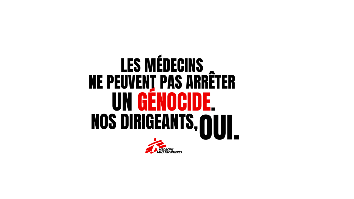 C’est le sens de la campagne globale lancée par Médecins Sans Frontières le 15 septembre dernier. Articulée autour du message suivant : « Les médecins ne peuvent pas arrêter un génocide. Nos dirigeants, oui », la campagne exhorte notamment la France à prendre des mesures concrètes, en accord avec ses obligations internationales.