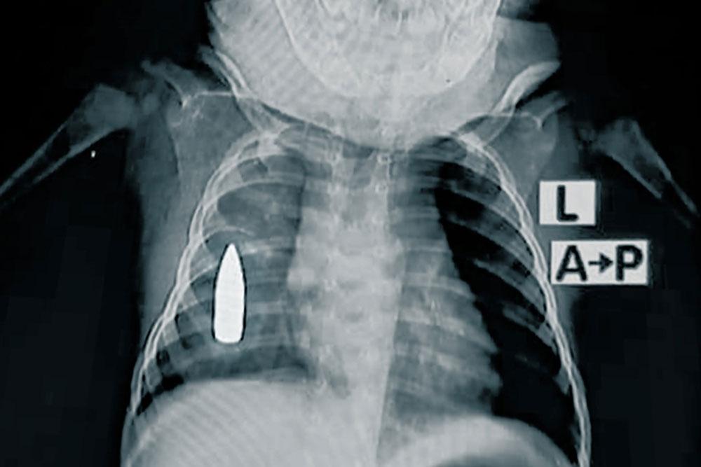 Fin octobre, plus de 30 blessés de guerre ont été transportés d'urgence à l'hôpital Bashair en une journée, à la suite d'une explosion sur un marché situé à moins d'un kilomètre de là. Douze des personnes amenées aux urgences étaient des enfants de moins de 15 ans. Une fillette de 20 mois est arrivée avec des éclats d'obus profondément enfoncés dans la tête. Alors que l'équipe la posait avec précaution sur la table de radiographie, une partie de la fragile calotte du crâne est tombée sur la table. « Des cas comme celui-ci sont fréquents », explique le Dr Moeen. « Heureusement, cette petite fille a survécu. D'autres n'ont pas cette chance. »