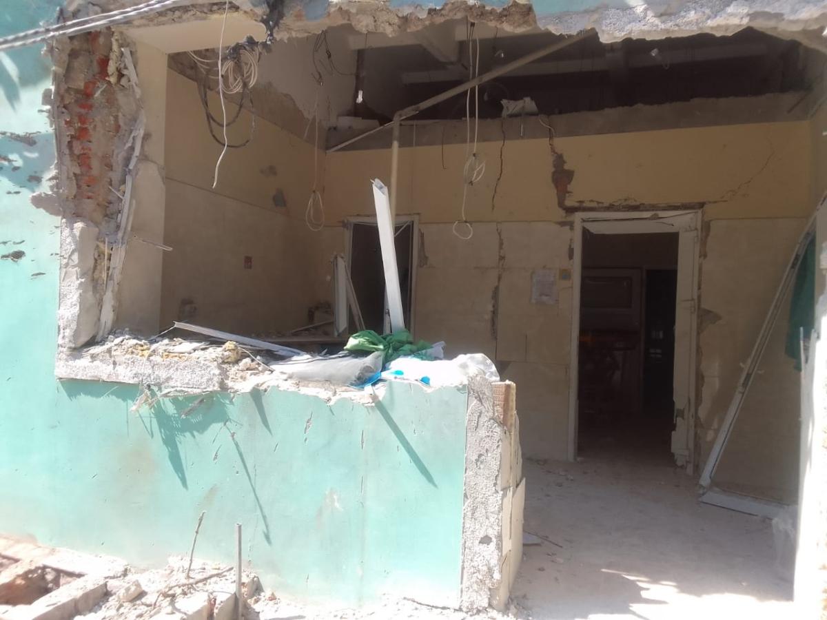 « J'ai ressenti une puissante déflagration quand l’obus a touché l’hôpital. Au moment de l'explosion, j'étais à l'intérieur de l'abri anti-bombes où je supervisais les travaux de réparation. Notre équipe a aménagé un bunker dans l’hôpital pour les patients et le personnel du ministère de la Santé ukrainien. Une fois la poussière retombée, je me suis rendu à l’étage et j'ai vu que l'obus avait frappé la morgue et endommagé la structure en béton et les conduites de gaz. Il y avait environ 150 personnes dans l'établissement médical au moment du bombardement, patients et personnel compris. Heureusement, tous sont sains et saufs. Je tiens à souligner que l'hôpital est situé dans une zone résidentielle, avec une école et des immeubles d'habitation à proximité. », témoigne Andrii Dobravskyi, conseiller opérationnel de MSF en Ukraine, qui se trouvait dans l’abri anti-bombes en train de travailler à sa réhabilitation au moment où les sirènes ont retenti, indiquant des tirs d’artillerie imminents.