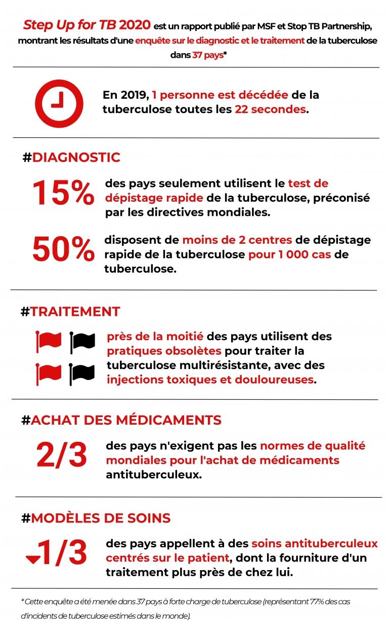Médecins Sans Frontières (MSF) est impliquée dans la prise en charge de la tuberculose depuis plus de 30 ans, travaillant souvent aux côtés des autorités sanitaires nationales pour fournir des traitements dans divers contextes, notamment les zones de conflit, les bidonvilles, les prisons, les camps de réfugiés et les zones rurales. Les premiers programmes de MSF pour traiter la tuberculose multirésistante ont été lancés en 1999. MSF a des projets de traitement de la tuberculose dans 30 pays et c'est l'un des plus grands prestataires non gouvernementaux de traitements contre la tuberculose multirésistante.