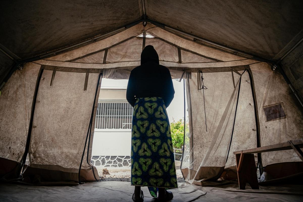 Une jeune fille, survivante de violences sexuelles, est prise en charge dans la tente de triage du centre de santé de Mugunga 3 à Goma.